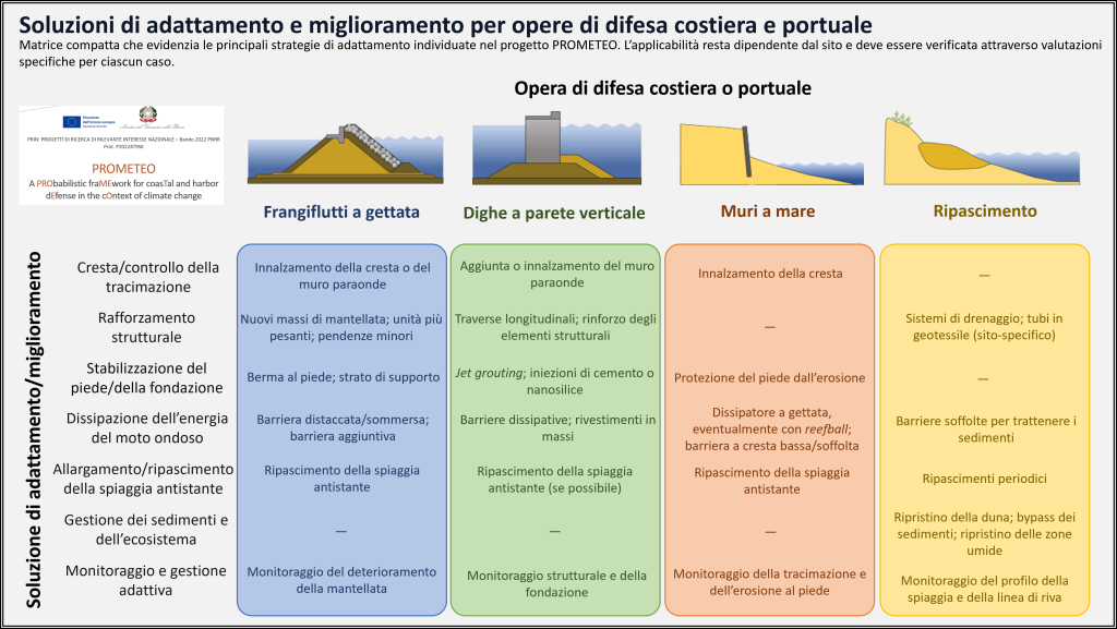 Sintesi delle soluzioni di adattamento e miglioramento per le strutture di difesa costiera e portuale