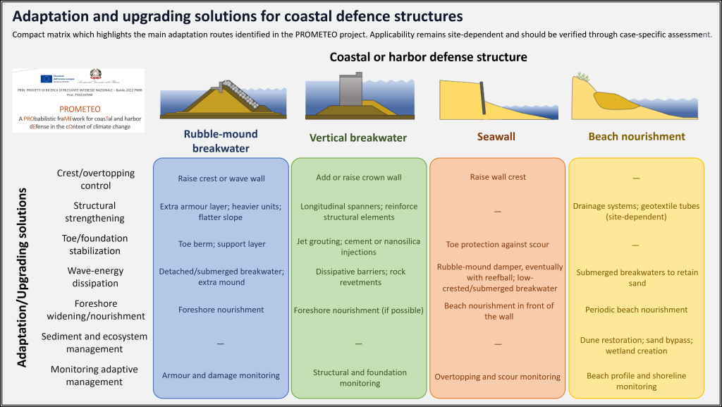 Summary of adaptation and upgrading solutions for coastal and harbor defense structures